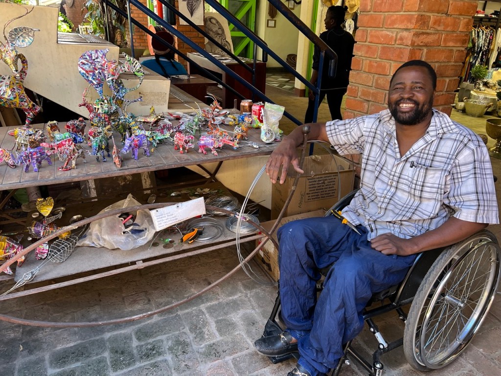 After the short drive to town on the hotel shuttle we found an ATM, a grocery store, and pharmacy for snacks and sun cream before setting off to explore. We politely but firmly discouraged the men aggressively selling trinkets on the sidewalks and instead went to the Elephant’s Walk Shopping and Artist Village. Their policy of no harassment or hard sells made for a much nicer browsing environment. We met Ishumael Mhike and happily bought a warthog made from recycled cans for our usual Christmas tree ornament souvenir. The kids also bought small wooden elephants and Dad taught them how to bargain.