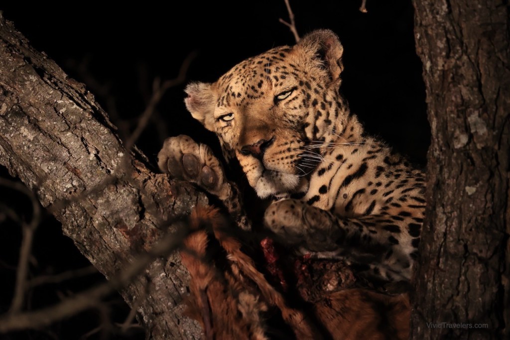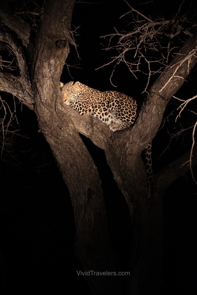 Which brings us to Umlani, the safari camp just outside Kruger National Park where we spent 4 magical days, along with my mom and stepdad. It was everything you imagine a safari experience should be and then some. Imagine – thatched roof huts with outdoor showers and honey badgers knocking on your door at night. Knowledgeable and friendly rangers that expertly navigate the preserve to track the animals for education and photos. Sun-downers set upon a portable table, with fine gin and ginger beer while watching the sun set over the African plains. Meals that are ridiculously plentiful and delicious. Hot water bottles under your covers at night and on your lap during sunrise game drives. A tree house overlooking a watering hole, with elephants trumpeting at night while you sleep under the brilliantly bright milky way. Then there are the legendary animals – leopards in trees with their fresh kills, prides of lions with bellies so full they lazily sleep in the grass, herds of elephants with babies in tow, and herds of Cape buffalo, zebras, rhinos, and antelope.