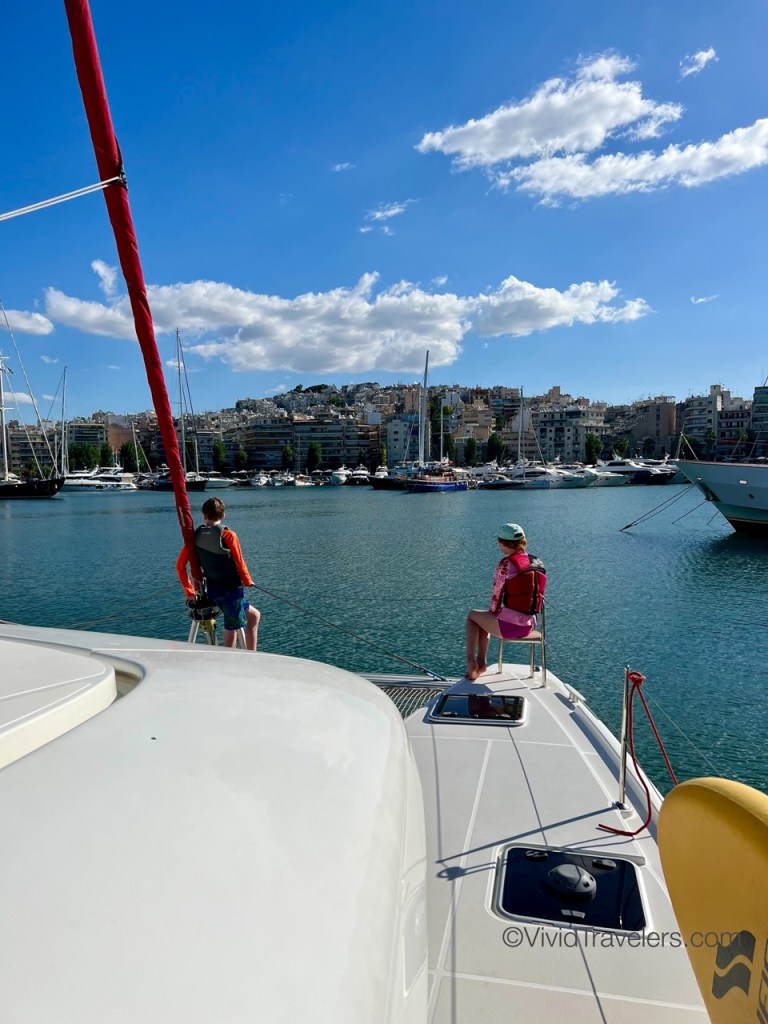 Hello friends! I want to share some of the gorgeous scenery and onboard action of our sailing adventure! Our second week in Greece was in the islands and peninsulas of the Saronic Gulf. We chartered a 44ft catamaran from Sunsail Athens and took three generations out onto the water to make some memories.