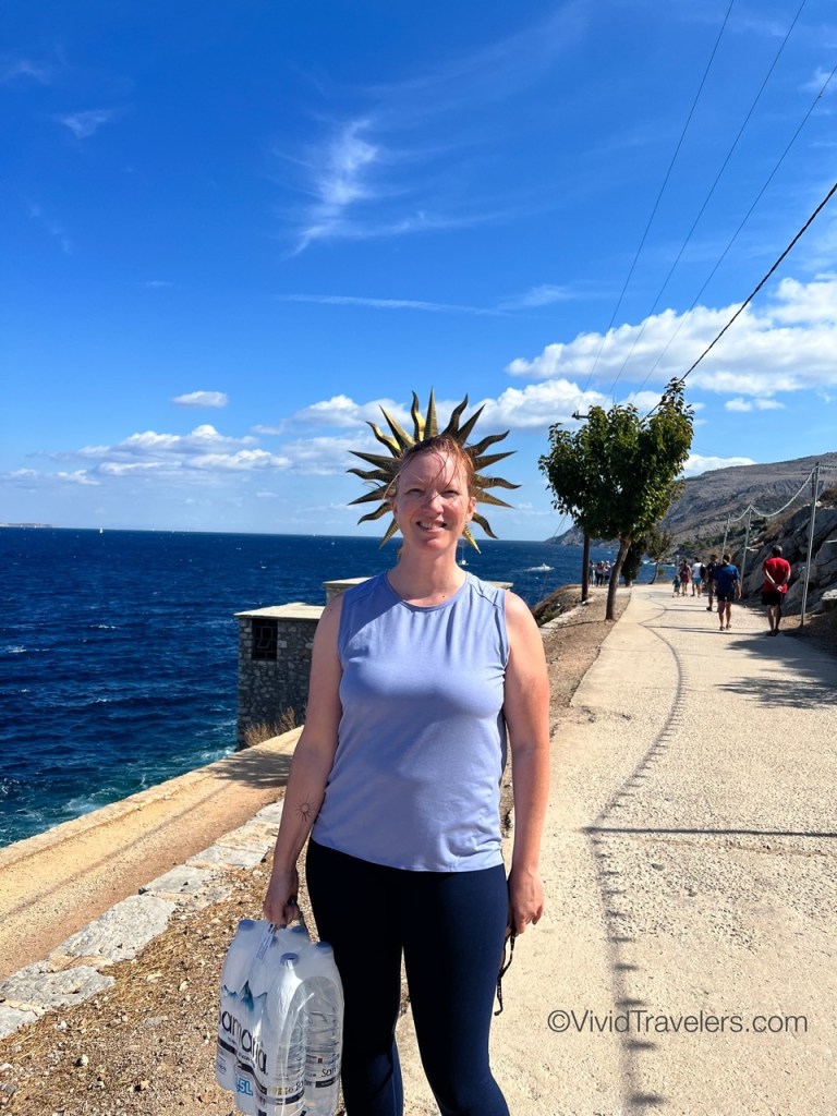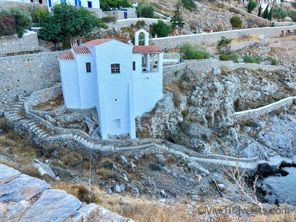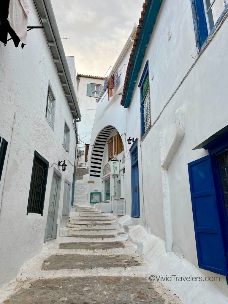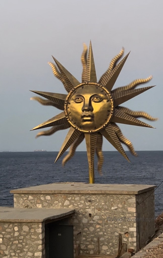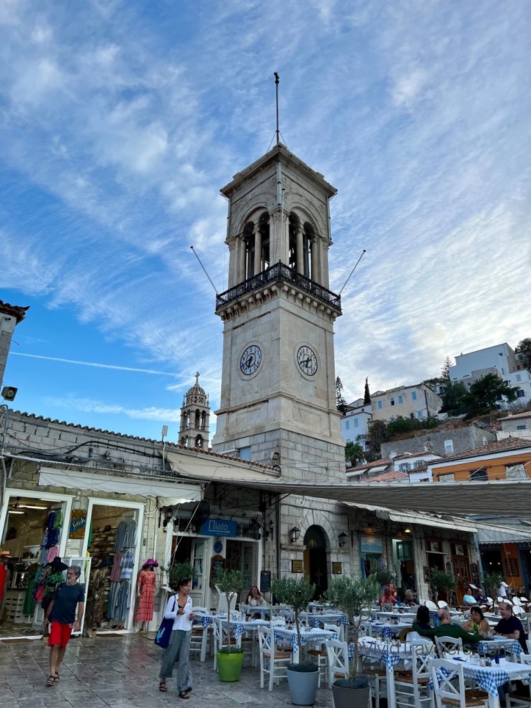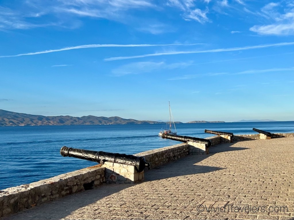 Our second stop was by far my favorite. I left my heart in Hydra and I look forward to going back for a week or more! Hydra is known for its powerful and wealthy merchant fleet that was key to the Greek Revolution. This explains the beautiful mansions, the many small harbors in the area, and the cannons. We anchored in a small harbor to the east, but a great path along the coast connected it to the main town. Tourism has encouraged multitudes of cafes and shops, but the real allure is the rugged scenery; the narrow, steep, and windy streets; and the marble path, buildings and towers. It’s charming. We thoroughly enjoyed our two days of shopping and exploring.