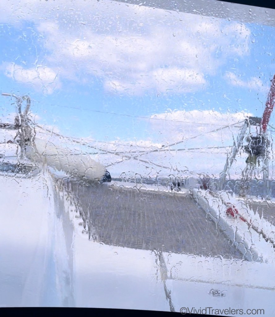 By Gwyn: When the boat starts rocking it’s my cue to go down to the cabin and take a good nap. It’s easy to fall asleep to the sounds of the waves and the rock of the boat. You have to be careful because if you don’t lock the cabinets they will clash around and wake you up! After I’m done with my nap, Drew and I go down to the forward cabin and jump up and down when the big waves come; it is lots of fun. I’m glad we got to do this bouncy experience.