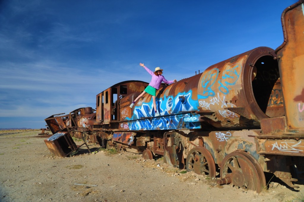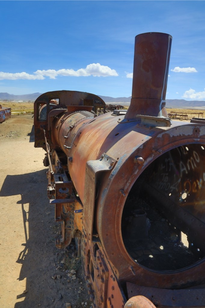 Our final stop of the day was at the Uyuni Train Cemetery.  Over 100 abandoned train cars are rusting on the edge of town and they have become an attraction for tourists visiting the salt flats.  We actually went here before heading out several days ago, but late afternoon was much quieter and easier to get some fun photos.