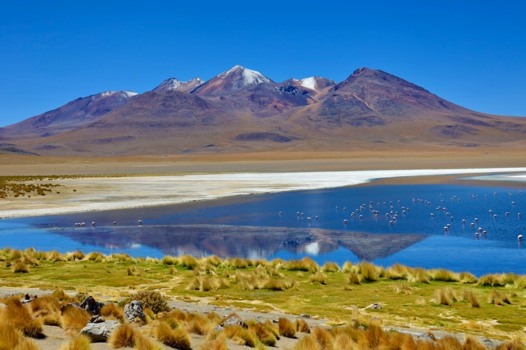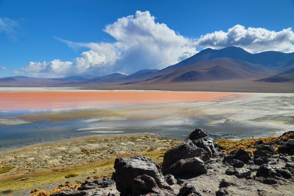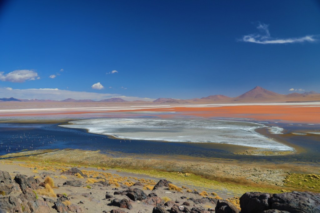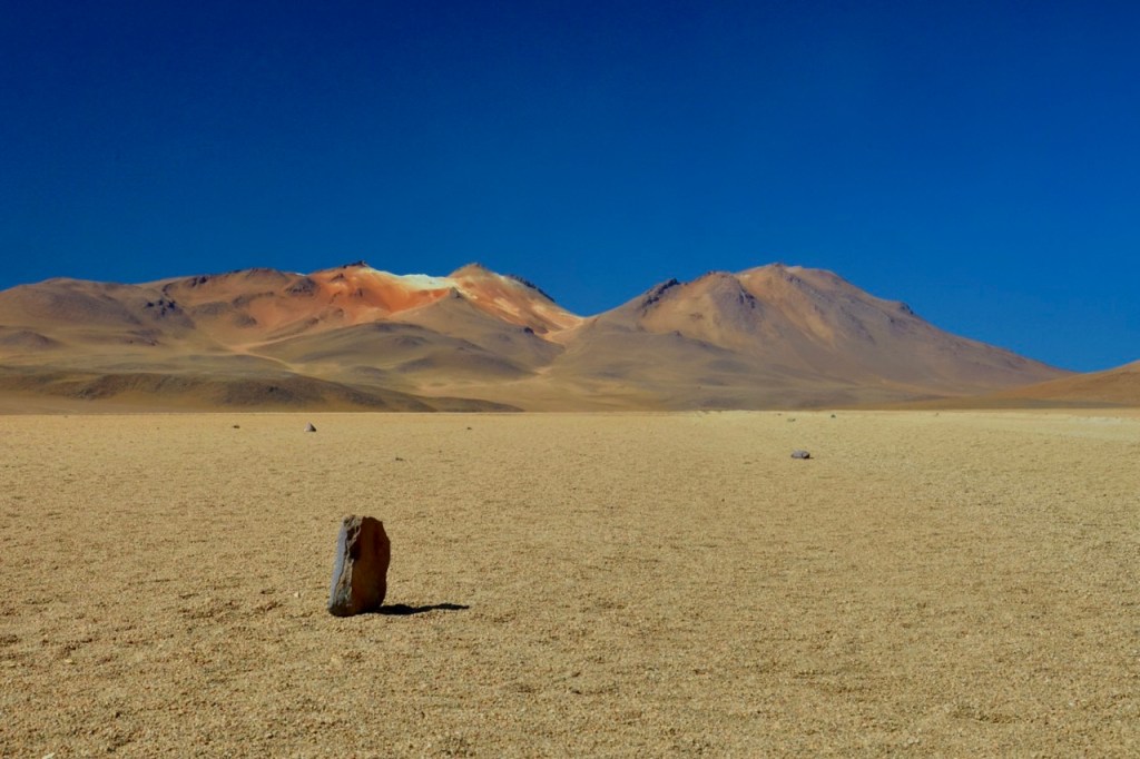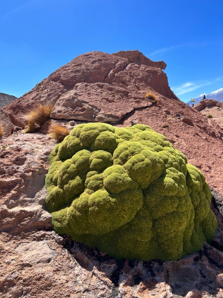 Occasionally green plants blanket the landscape in the form of moss mounds and tufts of grass, and so a few hearty animals do survive there.  The rest of us are tourists in our salt-crusted SUVs, fleeing south into this colorful desert from the blinding whiteness of the Uyuni Salt Flats.  We come for flamingoes, hot springs, and colorful lakes.  What we find is a landscape so alien it might as well be the moon…or Mars.