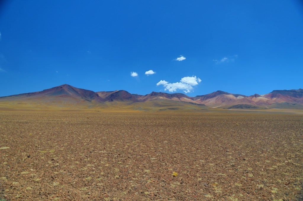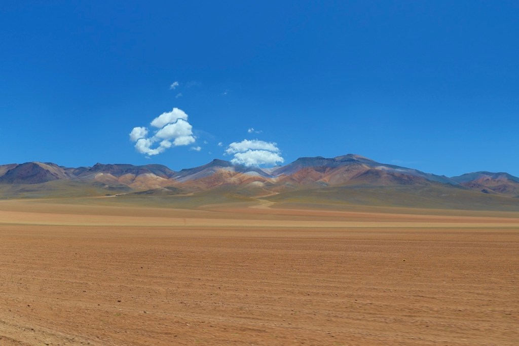 Bolivia is a colorful place, but sometimes you have to look a little deeper to see the subtle changes to the landscape palette.  While driving on the Bolivian side of the Atacama desert, at first it looks like an endless brown.  Slowly you notice the reds, tans, oranges, blacks and grays of a volcanic landscape.  The colors shift and gleam as if from scales of an iridescent bronze dragon, and smoke curls from their nostrils/mountaintops.  It’s beautiful and slightly menacing because you know you could not survive there for long.