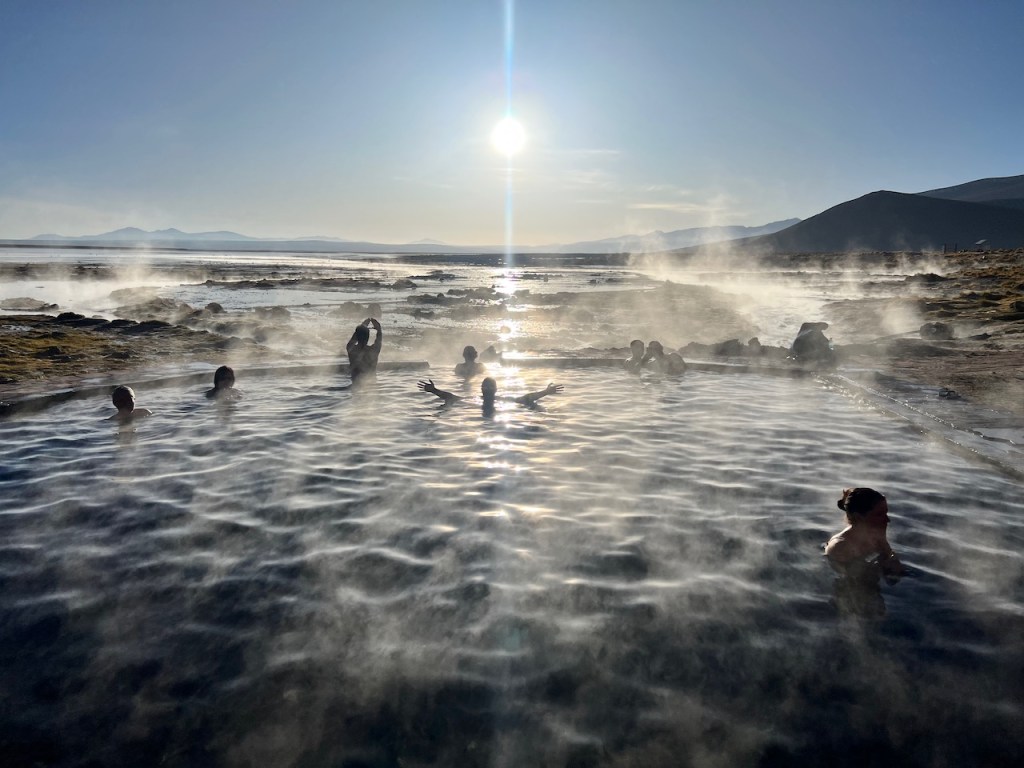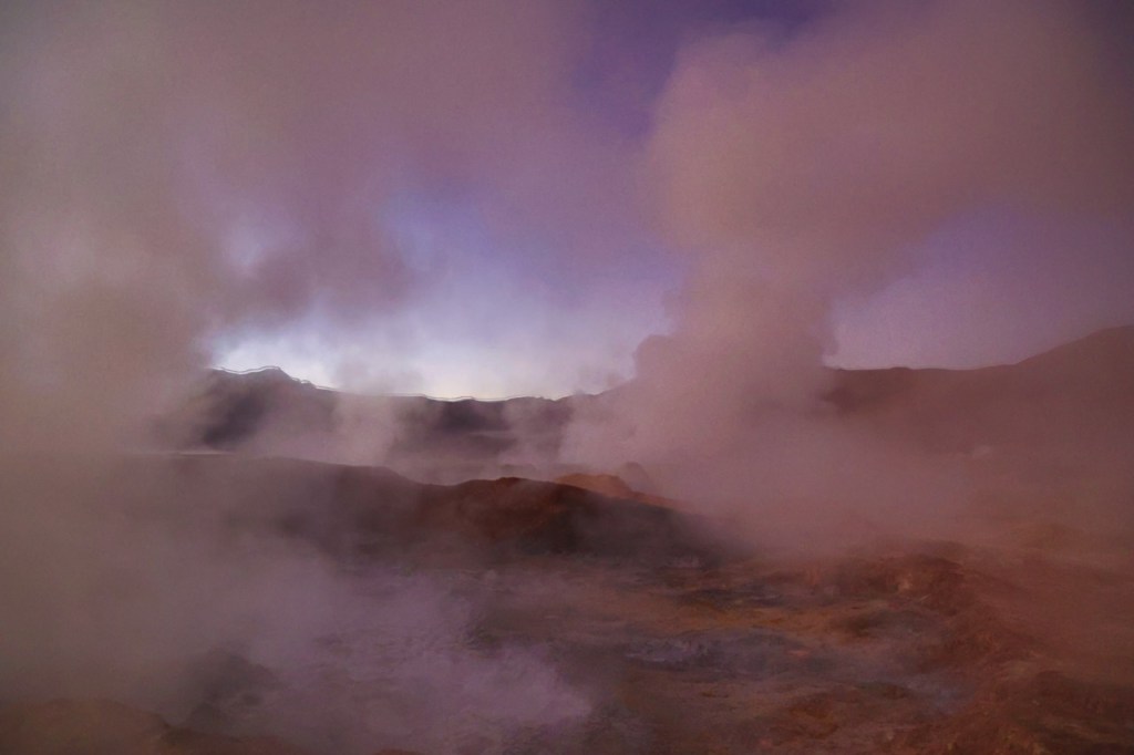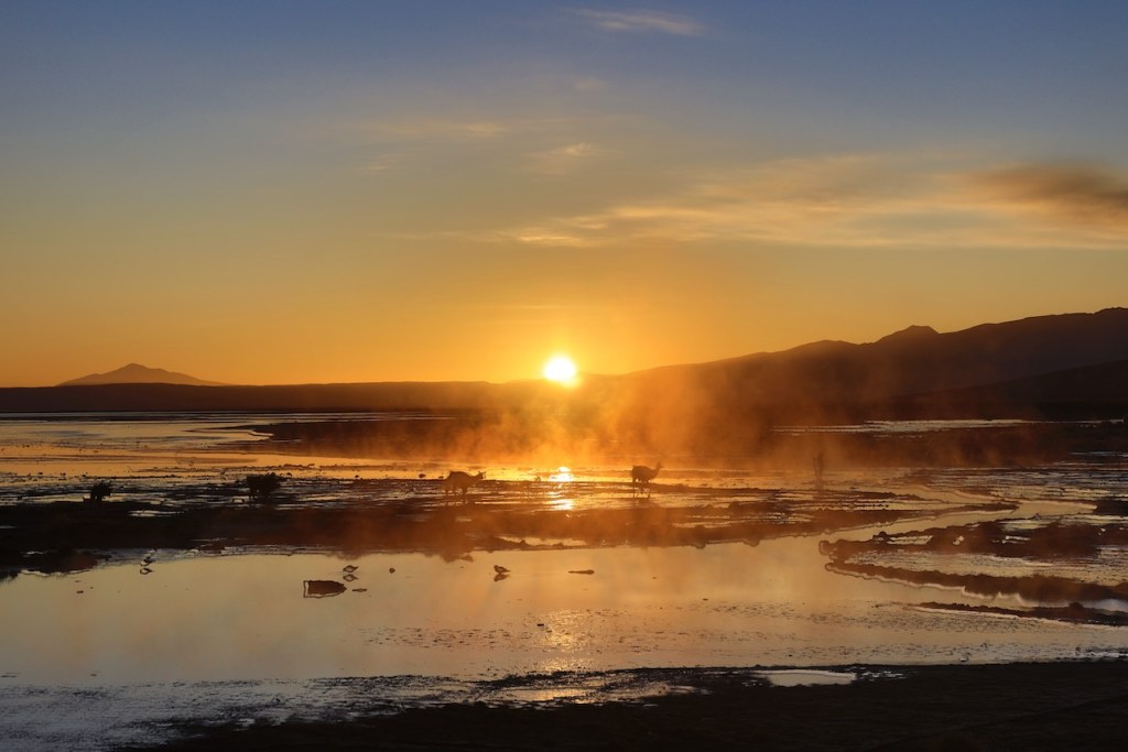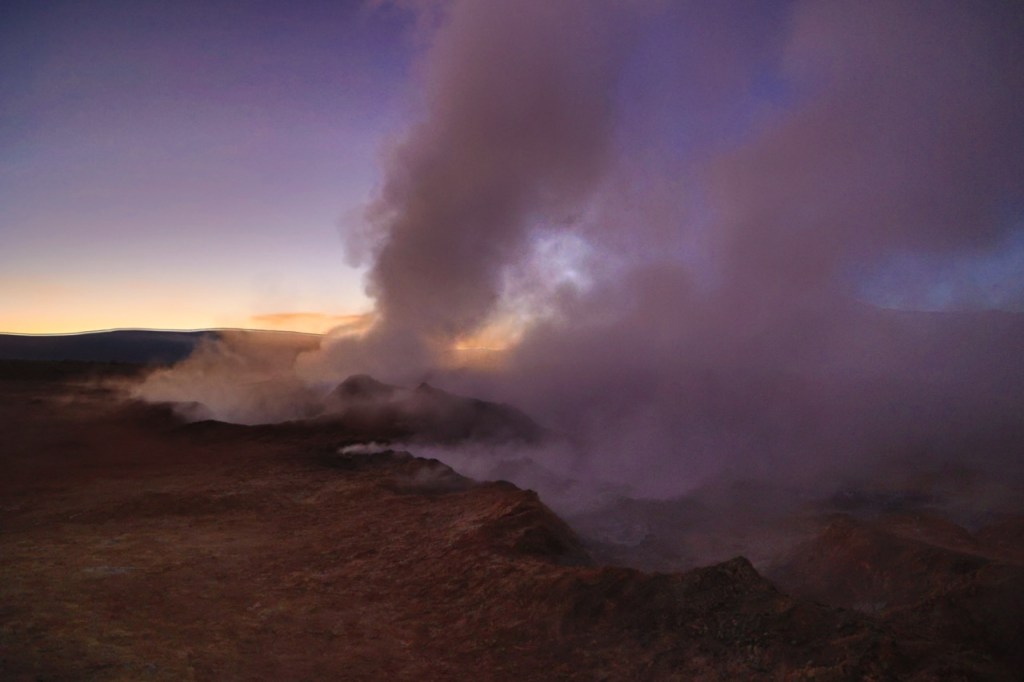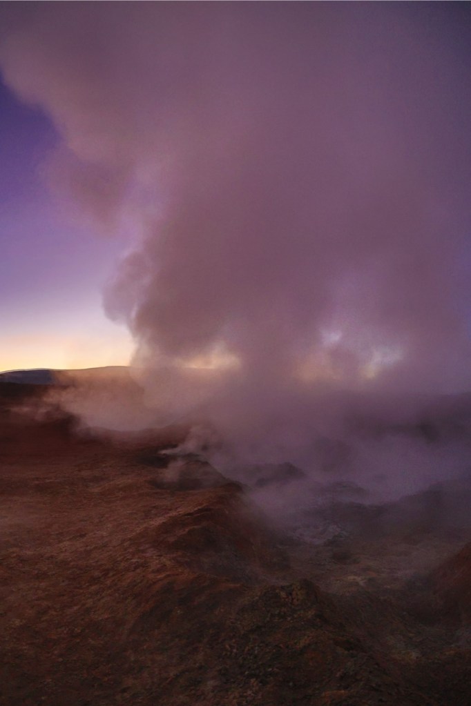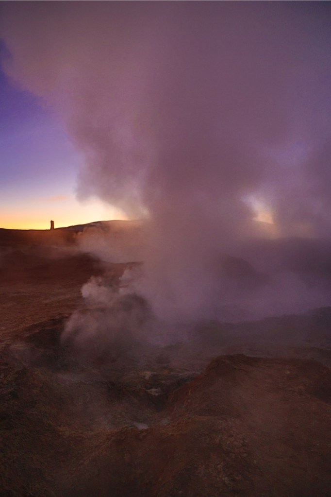 The next morning we were up before dawn and drove into the Reserva Nacional de Fauna Andina Eduardo Avaroa.  We wanted to see the bubbling mud and steaming fumaroles at sunrise to see them at their most dramatic.  We parked on the clearly thin ground, walked on unmarked paths, and witnessed the heat of the volcanic system first hand.  I’m not sure I’ve ever done anything more dangerous, but we went away unscathed, so it was ok?!?