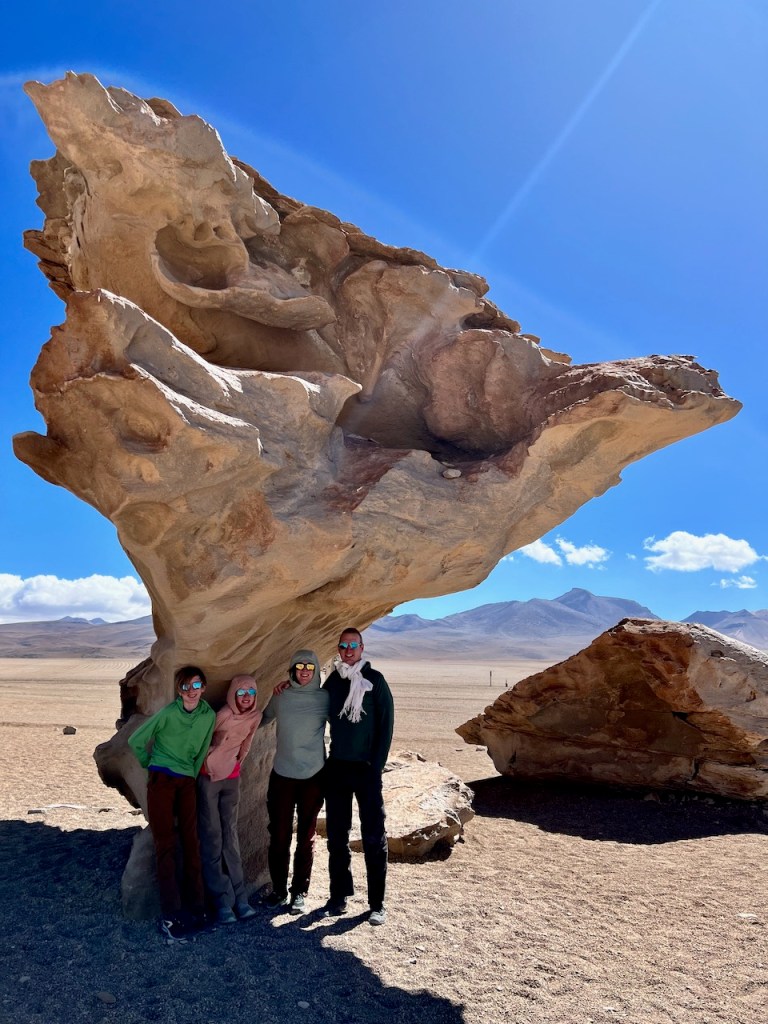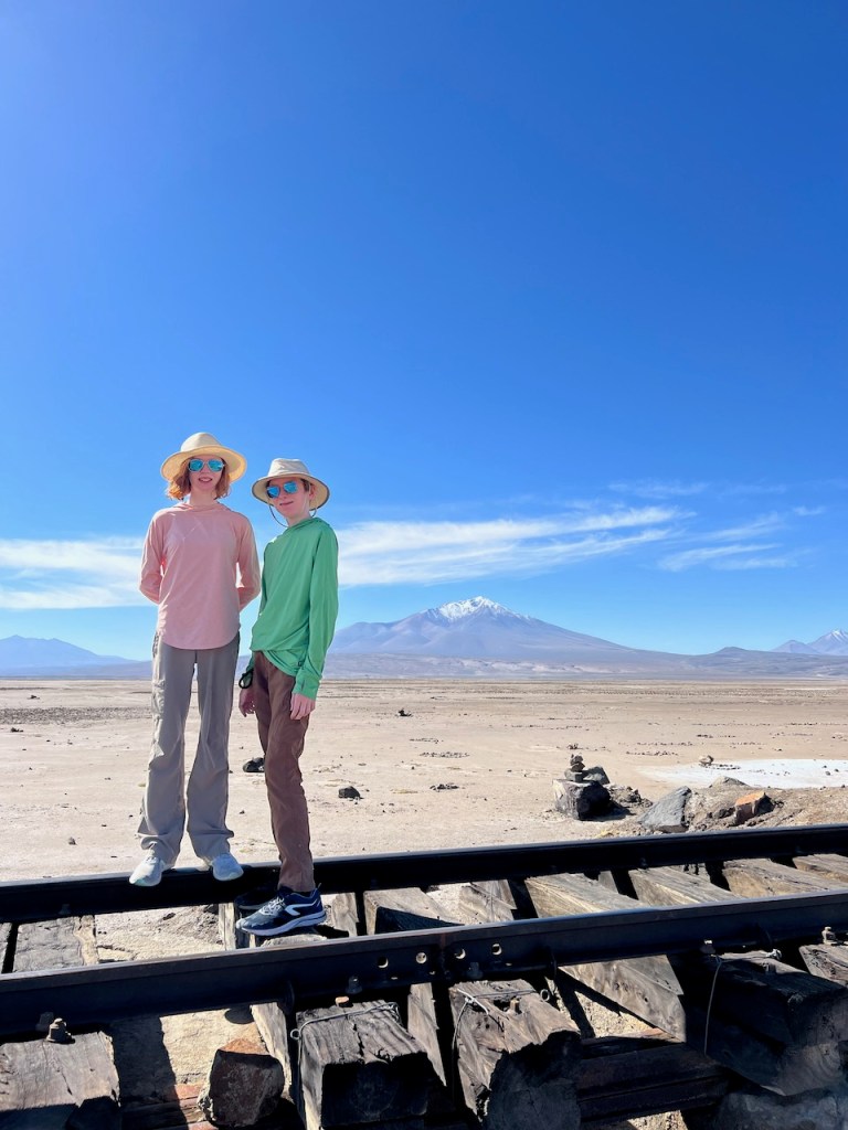 Starting in Uyuni our small group was just our family and a young man from Japan named Kiyo.  He has been traveling for a year and periodically working remotely to pay for it.  He’s on his own and putting it together as he goes, which is very impressive to me.  I’m not that brave, but it seems to work for him.  Kiyo was very kind and fit in, both figuratively and literally.  When he left us to cross over into Chile we missed him but quickly filled his space with snacks.  But first we had many adventures together in the span of a few days!