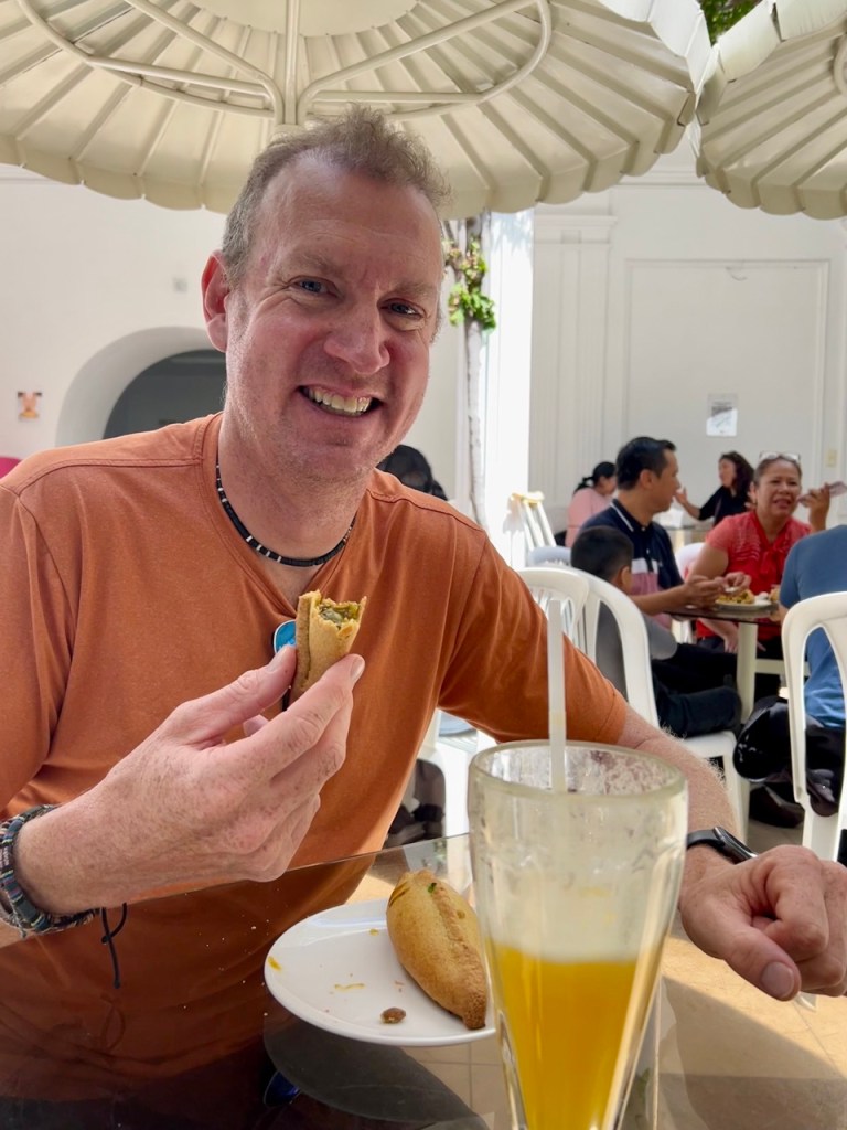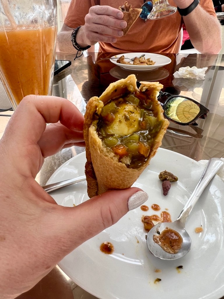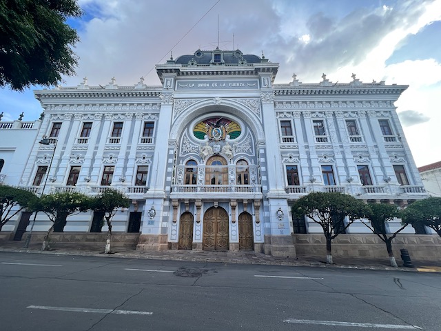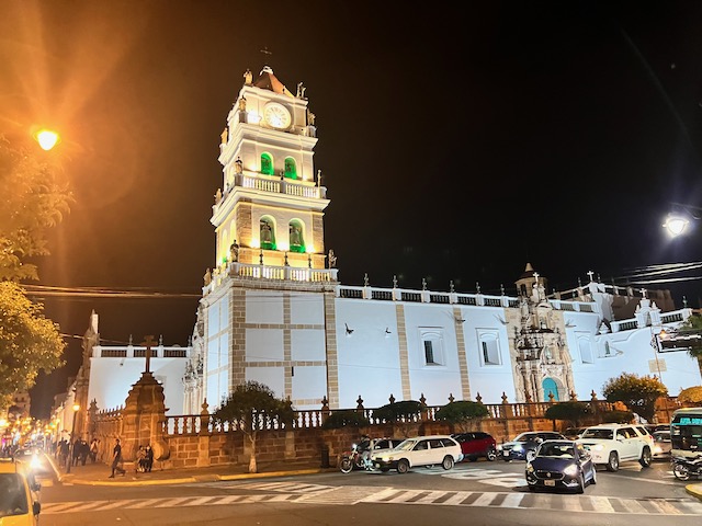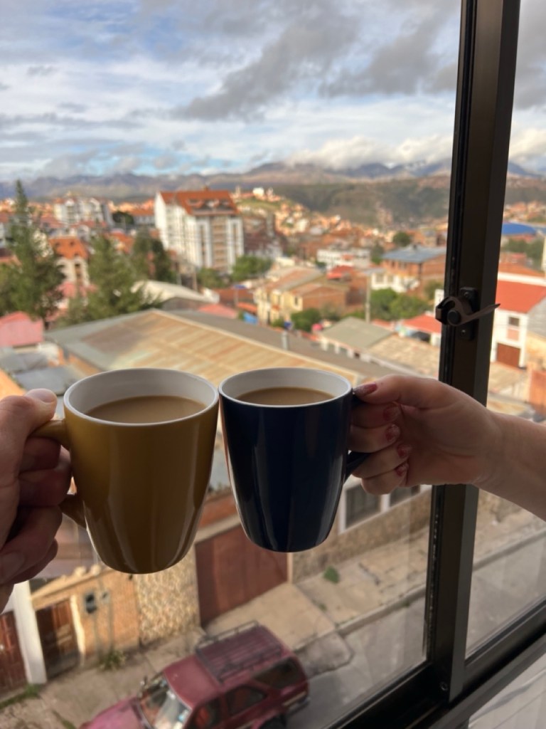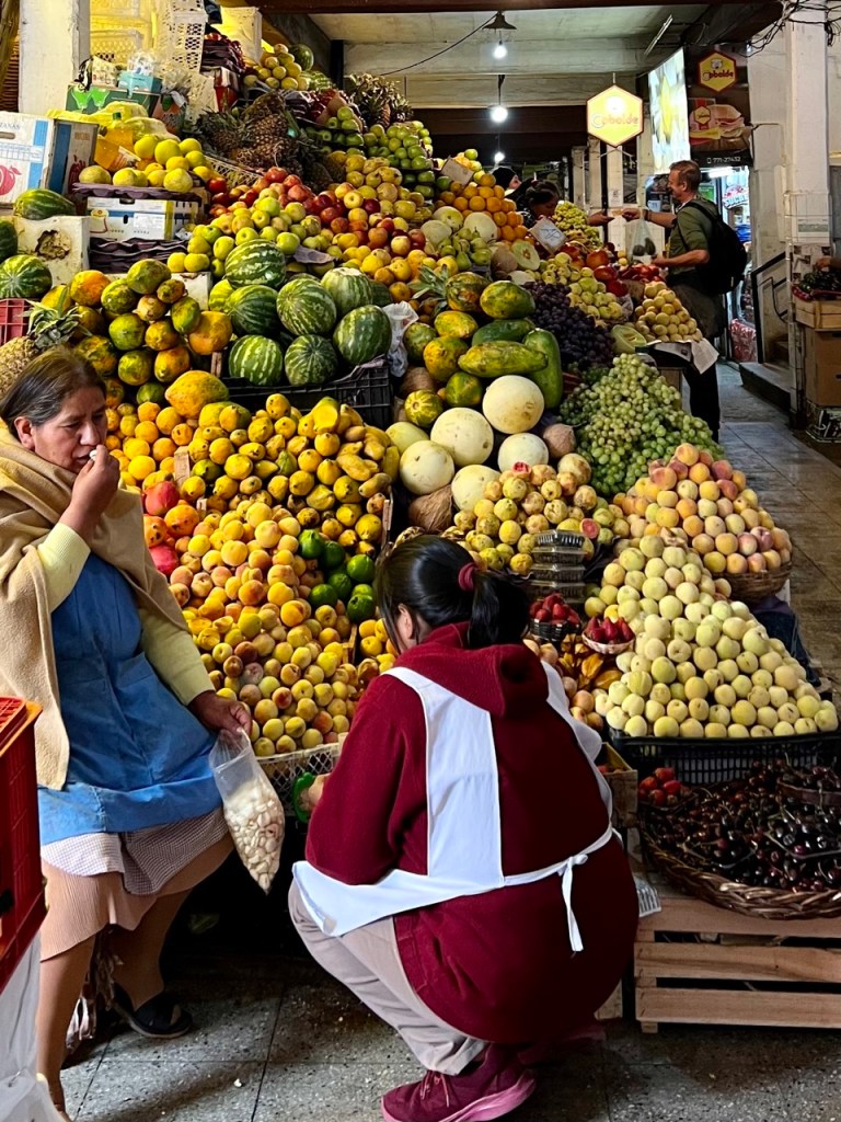 We said our thanks and goodbyes to Julia in Sucre, the constitutional capital and “Heart of Bolivia”.  Our beautiful Airbnb was an excellent place to crash, sleep, and catch up on school and the chores of life.  We walked every day, enjoying the relatively low elevation of 9000ft.  We explored our small section of town and found many great restaurants, parks, markets, and shops.  Gwyn will tell you more about the shops later.  My favorite food find were the salteñas.  These juicy empanadas have a slightly sweeter pastry shell and I loved the versions found at El Patio