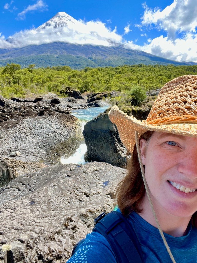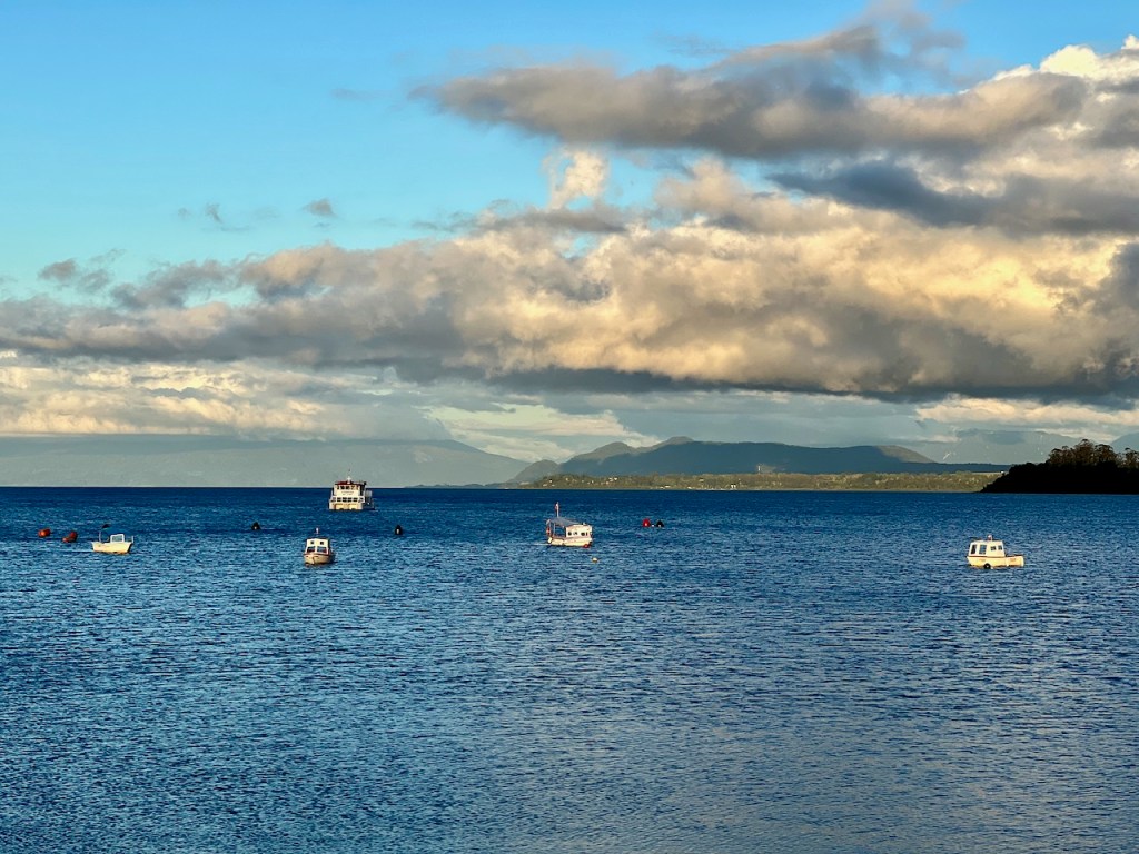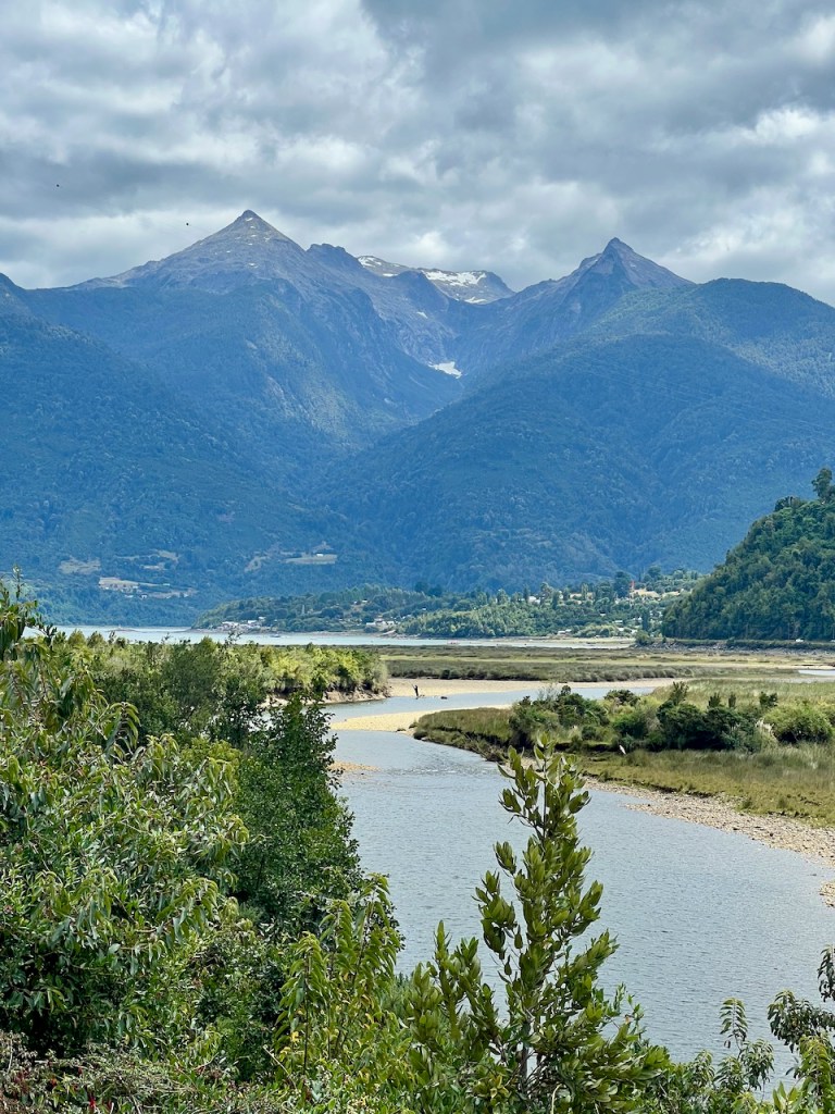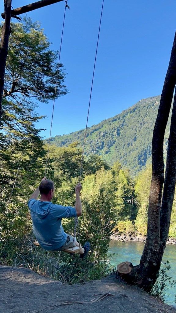Our first stop was a week in Puerto Varas, a small tourist town in the lakes district of Chile at the northern end of Patagonia.  Imagine Lake Tahoe, but surrounded by 3 volcanoes instead of the Sierra Nevada Mountains.  We stayed at a very new AirBnb, with 2 bedrooms, 2 baths, a lovely living space and a porch.  The apartment was within a short walk of the town, which could best be described as a touristy but also an outdoor adventure oriented town.  Lots of cafes, restaurants, and shops full of outdoor clothing and local crafts.