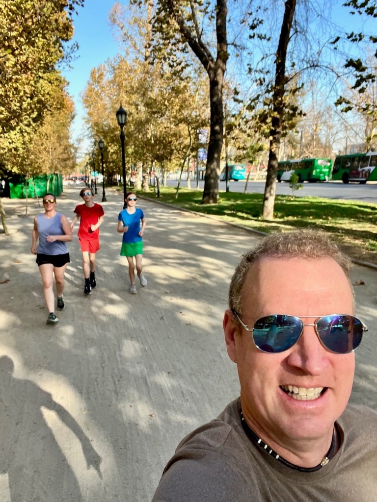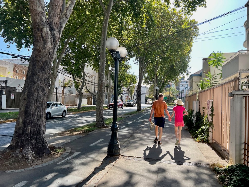 After an enjoyable week in Puerto Varas, we moved on to the cosmopolitan capital of Chile, Santiago.  During our four days we walked, explored, ate and sweated (a lot!).  The hotel we stayed in was wonderful with great staff, lots of local charm, a reasonable price, free breakfast, a room that fit the four of us (unusual to find in a hotel) but unfortunately no air conditioning.  While it cooled off nicely at nighttime, the days were sweltering hot which made schooling the kids more uncomfortable than usual.  Santiago is a modern city, with lots of new construction, contrasted with colonial architecture and extraordinary amounts of artistic murals and graffiti.  As per usual, we walked miles and miles each day exploring different neighborhoods, such as Bellavista, the Barrio Italia, and Lastarria.