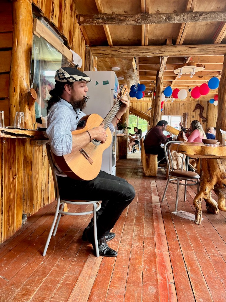 Also during the week, we hiked to a local waterfall, drove up and hiked around a crater on Osorno Volcano, and did an all day road trip around a local fjord.  That last bit included the kids’ first ride on a ferry.  During the drive, we stopped at a local restaurant where the menu was steak or chicken, and that’s it.  The meat was paired with potatoes or rice, steamed veggies, and live (and outstanding) music.  Simple and authentic.