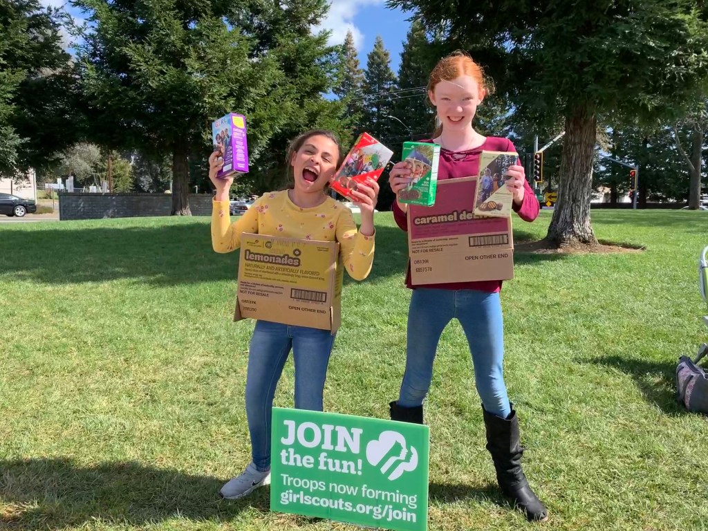 The cookie line up includes all your old favorites: Thin Mints, Trefoils shortbread, Peanut Butter Patties, and Caramel deLites (sometimes called Samoas). We also have new flavors like my favorite cookie, the Adventureful, which tastes like a caramel brownie! Vegan flavors are available and even a gluten free option. Check out all the yummy choices here.