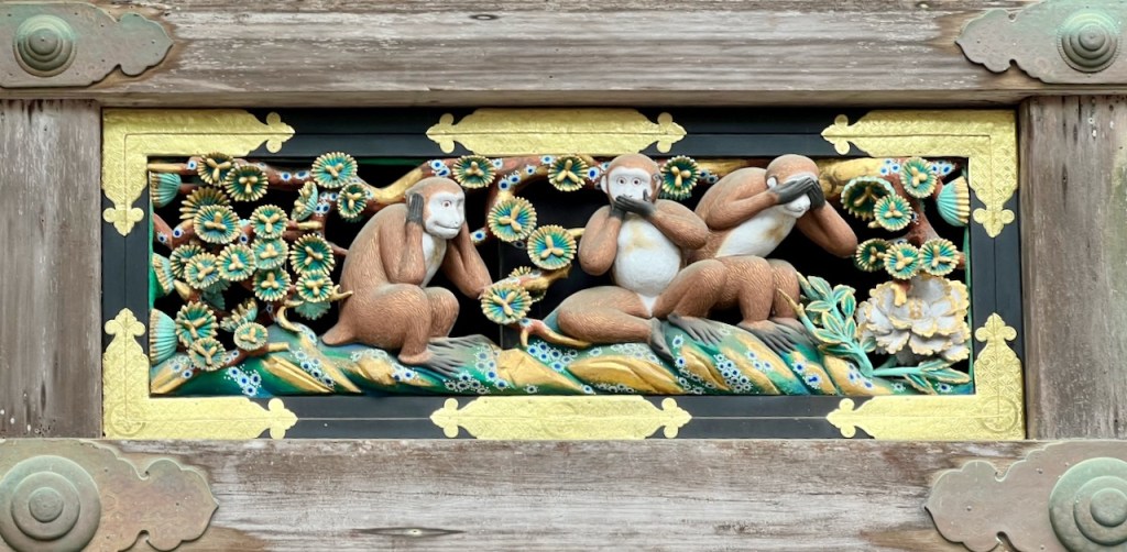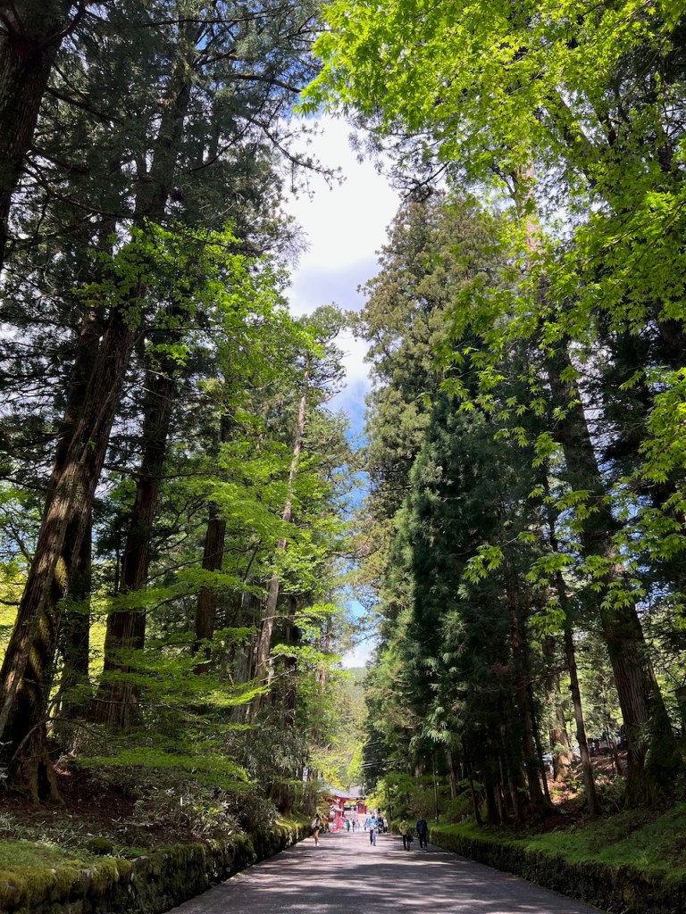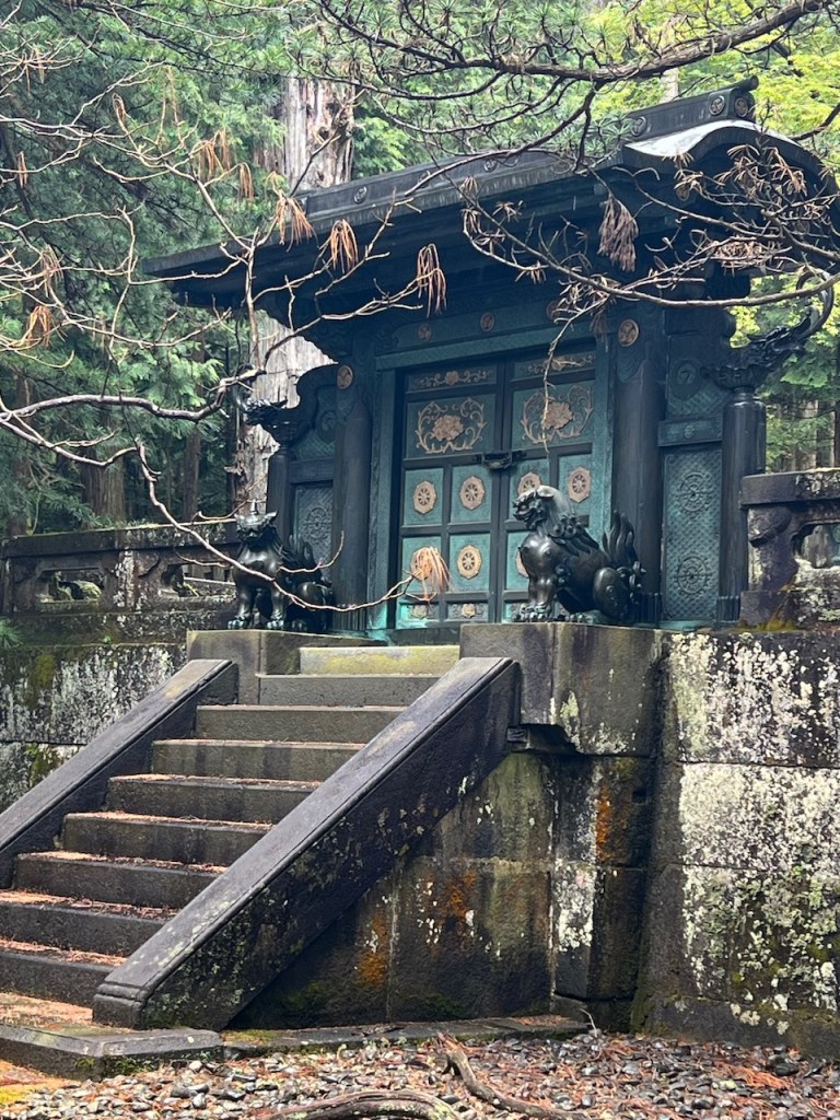 Nikko’s history dates back to the 8th century when the Buddhist monk Shodo Shonin established a hermitage to practice isolated meditation and spiritual enlightenment in the mountains.  In the 17th century, Tokugawa Ieyasu, the shogun who unified Japan, chose Nikko as the his final resting place.  He was deified and his opulent tomb is said to “enshrine the glories of the Edo period (1603-1868).”  We spent the day exploring the beautiful architecture, fun design details like monkeys and cats, and springtime greenery of the hillside complex.
