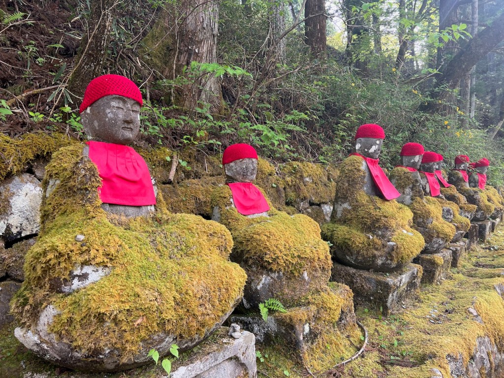 On our first day we took a nice walk along the Daiya River, just to get a feel for the area.  Nikko’s famous red bridge marks the entrance to the World Heritage Site and National Park, but rather than starting with the main sites, we decided to follow the river and walk in the Kanman Park instead.  As you can see, it had beautiful scenery and a striking row of Jizo statues, which are stone statues of the Buddhist protector of travelers and children.  How appropriate!  This side of town also has a botanical garden and the Imperial Villa.  (We didn’t make it to either, but we saw lots of plant beauty and architecture this trip and needed to pace ourselves!)