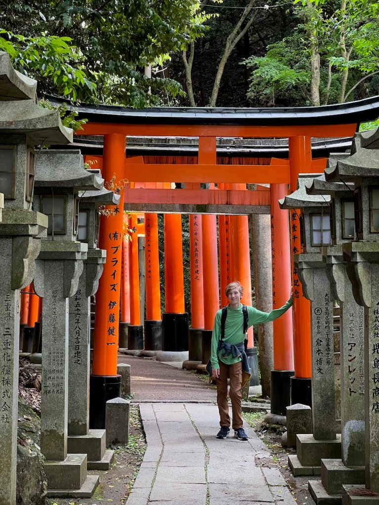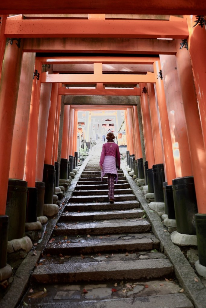 This is the primary Shinto shrine of the deity Inari (agriculture/industry), plus an excellent hike and photography destination. The sacred mountain path features many shrines, tea houses, and over eight hundred vermilion torii gates donated and placed in rows by businesses as either gratitude for prosperity or a wish for the future.Foxes (kitsune) are the messengers of Inari and seen all over the many shrines along the 4km (2.5 mi) winding path. Thousands of small torii wishes are left on the shrine altars.This hike was so interesting and unique and it’s beauty made this my favorite day in Kyoto