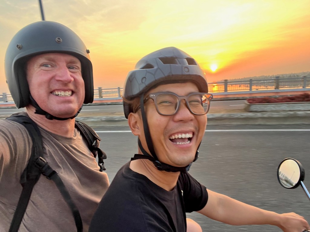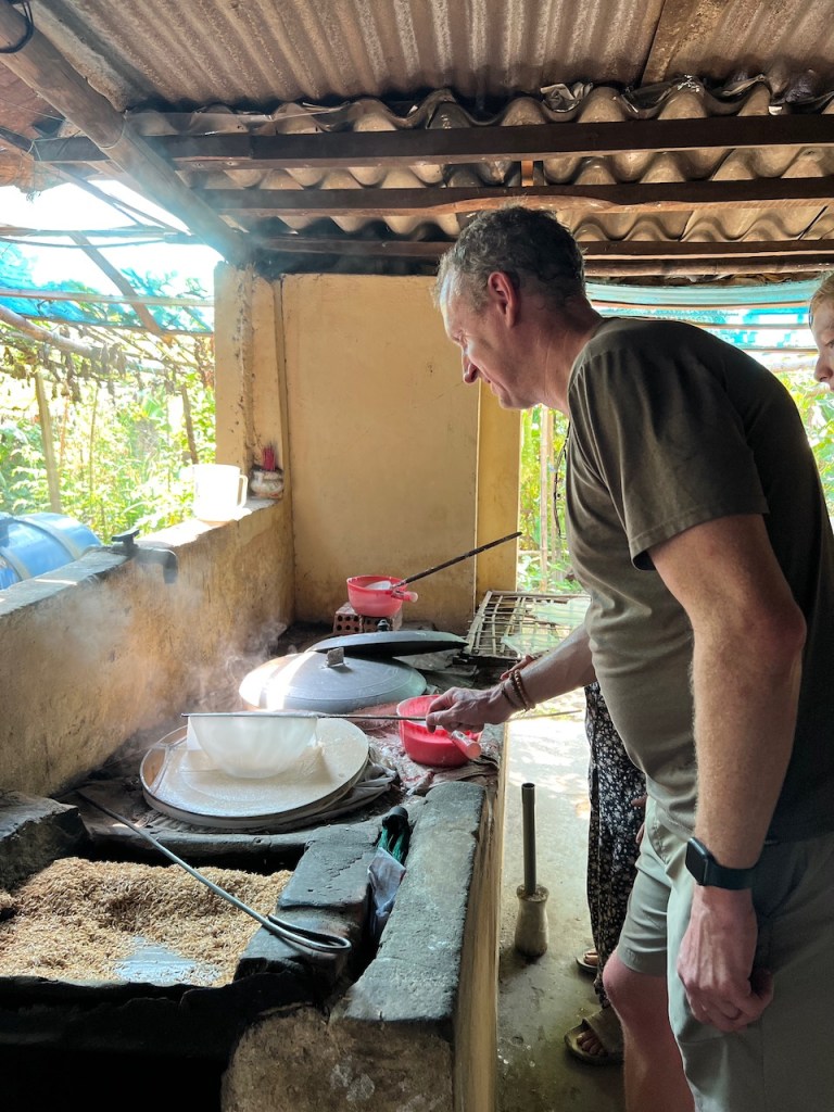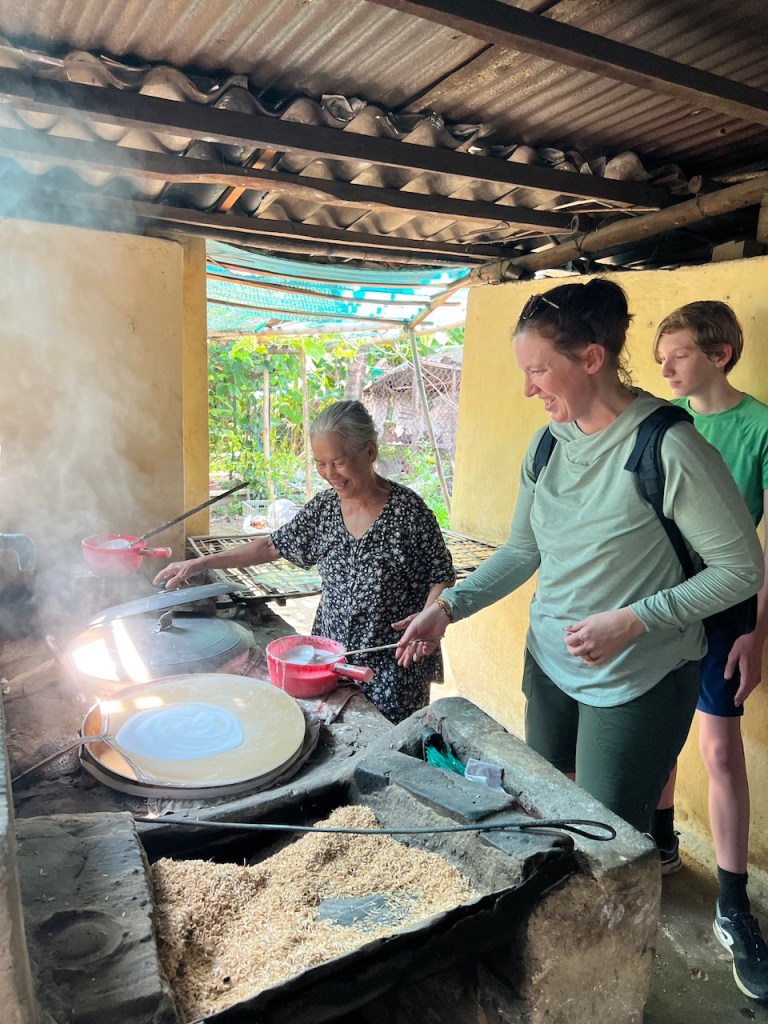 The first was a tour exploring the hidden gems of Hoi An with a local guide and his team of motorcycle drivers. Ha Nguyen and his friends were fun, safe, and excellent at their jobs. They showed us the quiet corners of Hoi An where people are still making a living in traditional ways. By leaving early in the morning we saw activities, and a sunrise, most tourists miss! By riding on the back of motorcycles with expert drivers we could get where a bus, or even a van, couldn’t go. Ha’s enthusiasm for traditional culture and the people of Hoi An was infectious. We highly recommend his early morning tour, and it can be easily adjusted to a private, family experience.