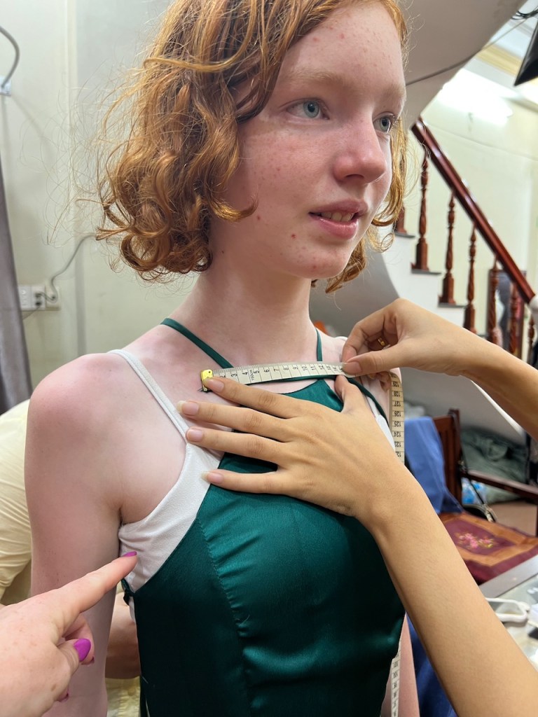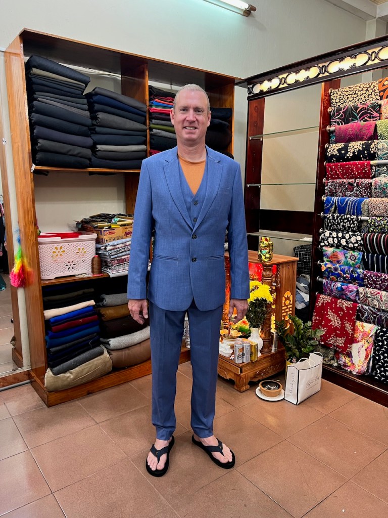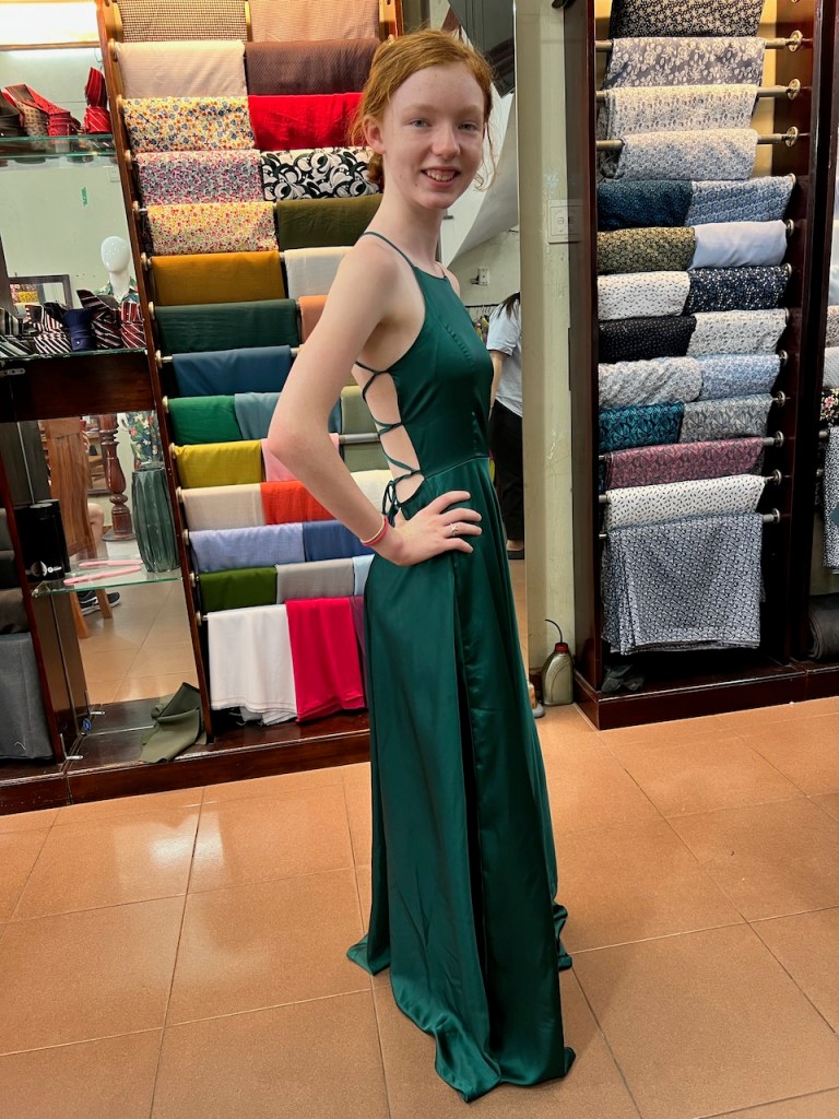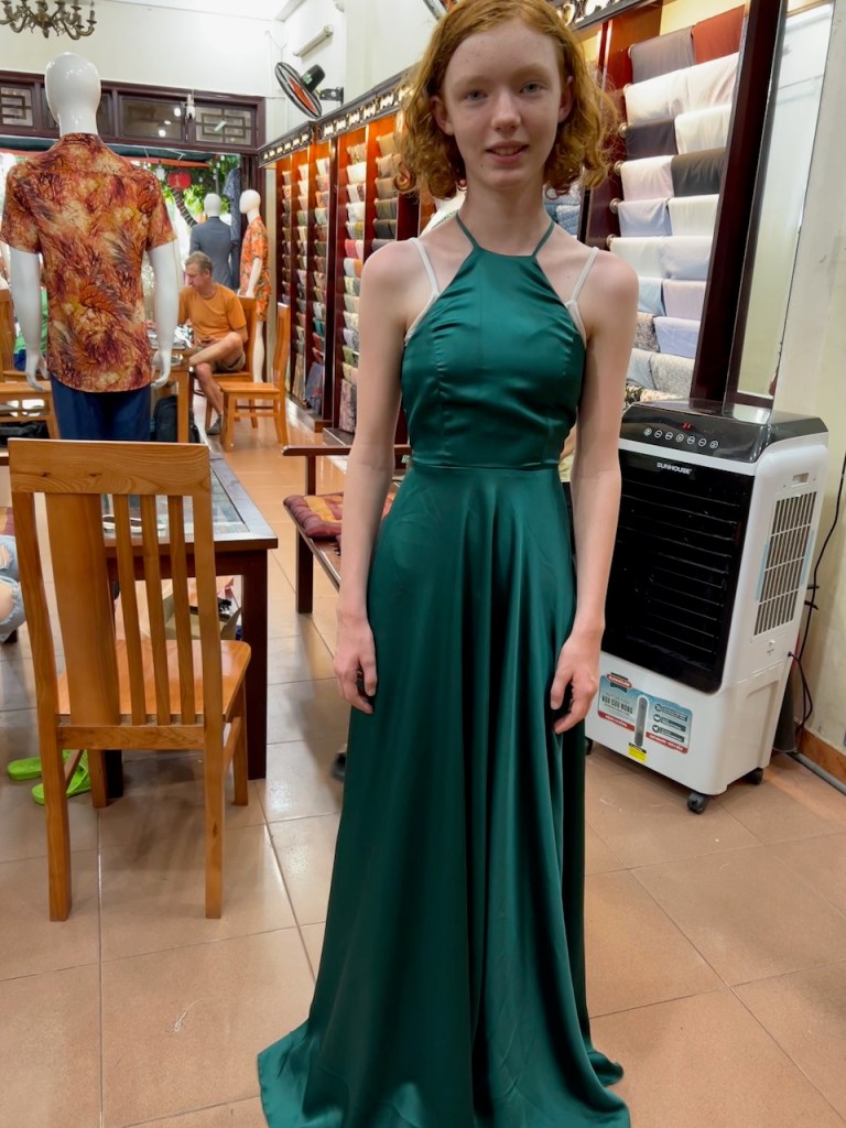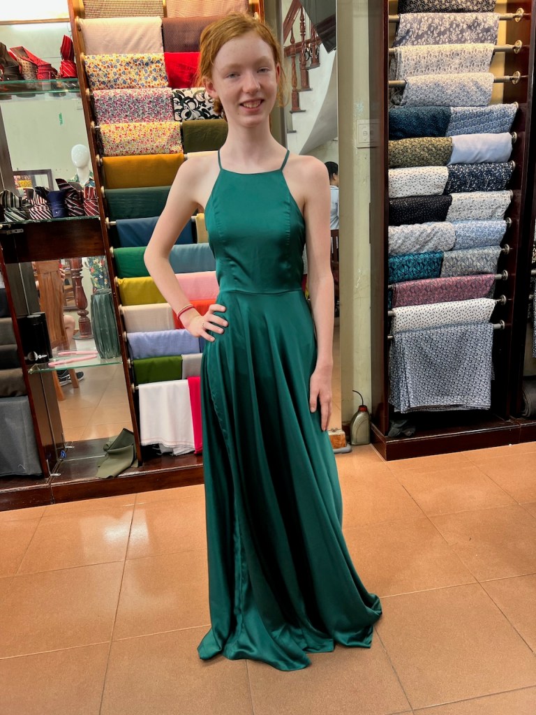 In Vietnam one unique thing you can do is get custom clothing. Mom and I got fancy dresses and we convinced Dad to get a suit. Drew said NO.